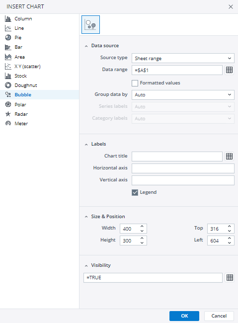 For more information on how to fill the Insert Chart menu, check the article Inserting a Chart.