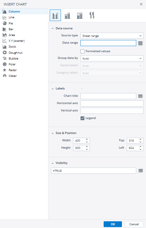 For more information on how to fill the Insert Chart menu, check the article Inserting a Chart.