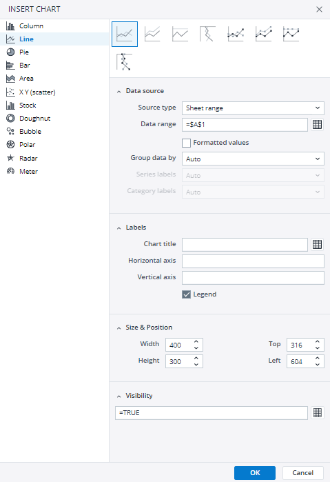 For more information on how to fill the Insert Chart menu, check the article Inserting a Chart.