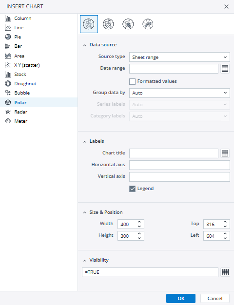 For more information on how to fill the Insert Chart menu, check the article Inserting a Chart.